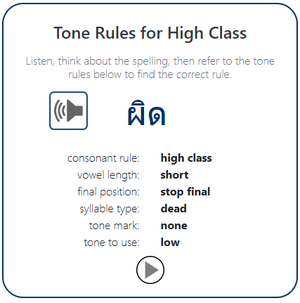 Although the class of the initial consonant is officially considered low, in our lessons we will treat these words as high class syllables, since they follow the high class tone rules and it will be less confusing for you.