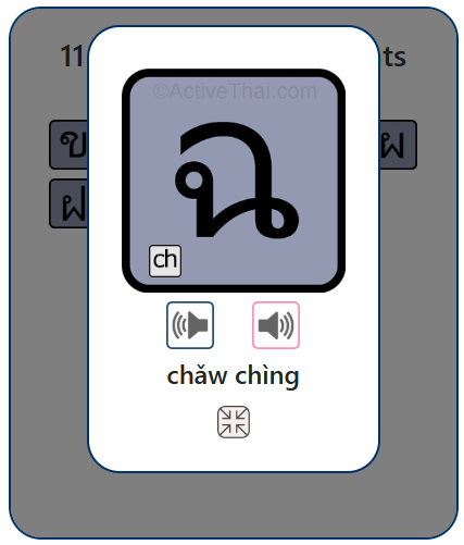 The name for the letter ผ (pǎw pûng) is transliterated using ʉ, a vowel sound that may give you some trouble. It sounds a little like oo in the English word too, but more like u in the French word du. You'll be learning the vowels in the next chapter, so don't worry too much if you can't say it yet.